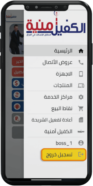 لتسجيل الخروج، اتباع الخطوات الاتية: