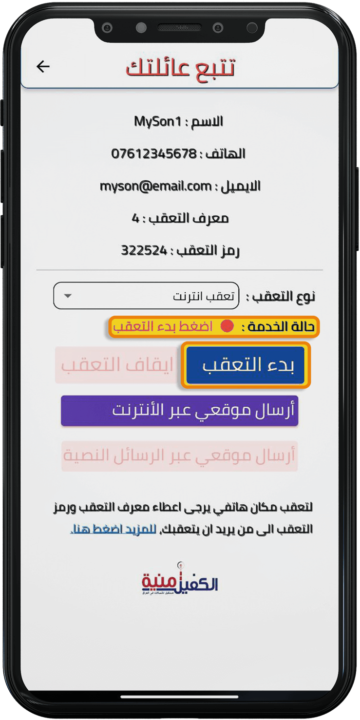 – الهاتف المطلوب تعقُبُة يجب ان يقوم بأنشاء حساب فرعي.